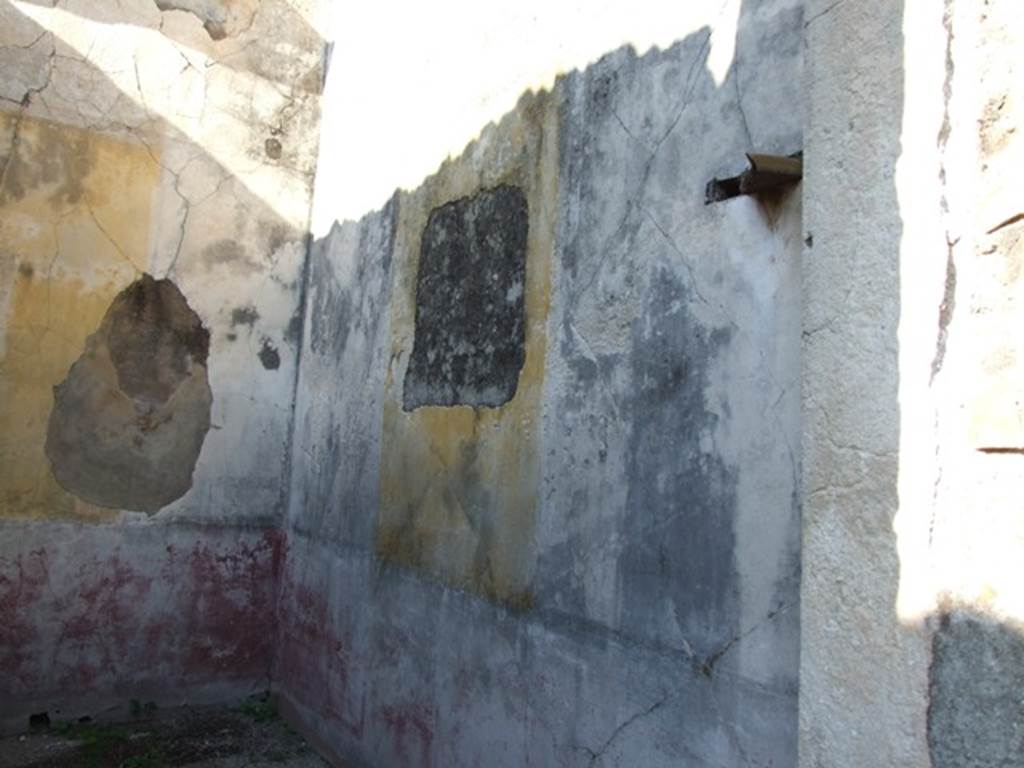 VII.4.31 Pompeii.  March 2009.  Room 22.  West wall. The central wall painting was a Mythological Landscape showing Polyphemus, looking out to sea at his beloved Galatea.  Painting now in Naples Museum.