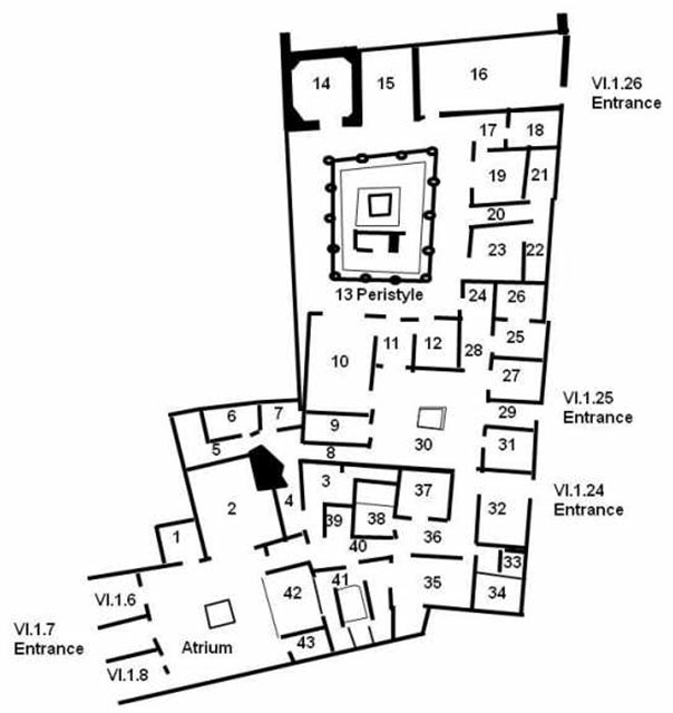 The room numbers are those referred to on the pompeiiinpictures pages for VI.1.7.