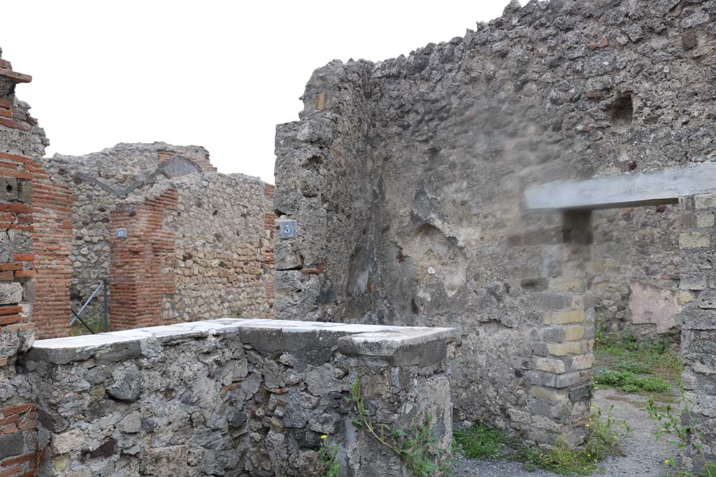 Looking south-east across counter towards entrance doorway, on left, and linking doorway to VI.4.4, on right. Photo courtesy of Nicolas Monteix.