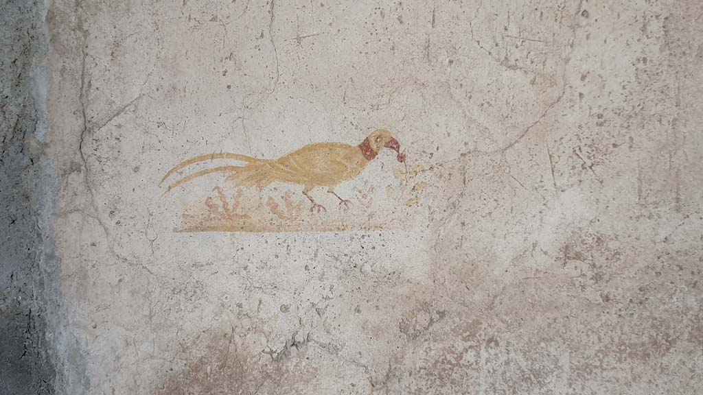 VI.16.33 Pompeii. March 2018. Painting of a bird from west