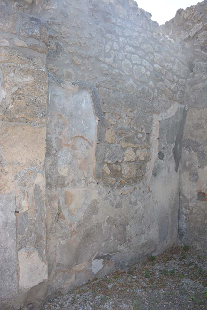 Pompeii. July 2017. West wall of room with open doorway in centre of south wall