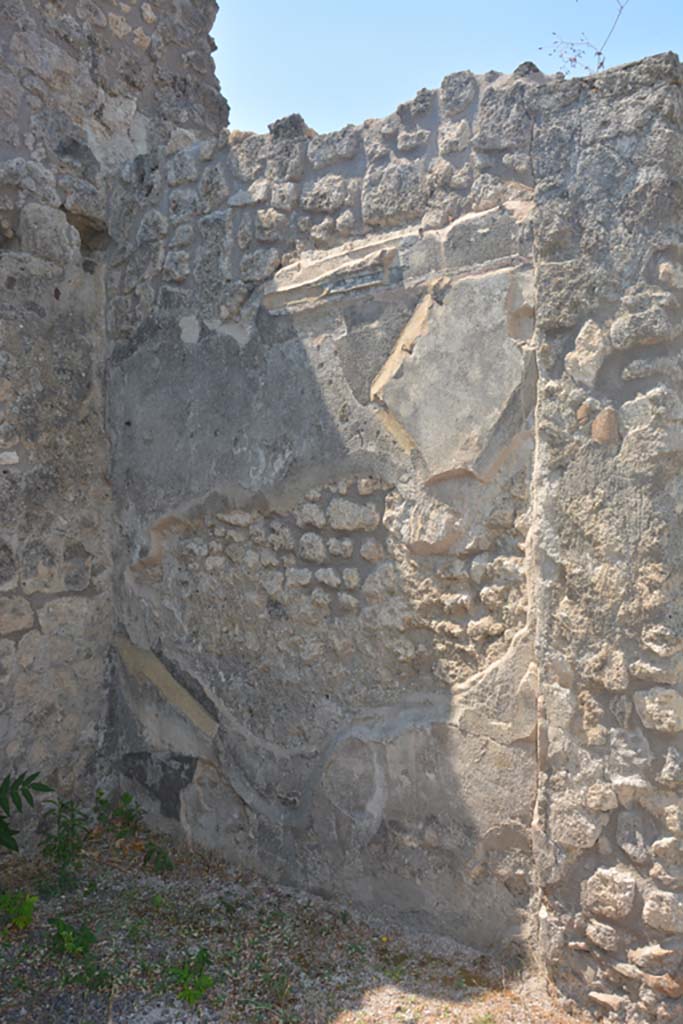 Pompeii. July 2017. East wall of room with open doorway in centre of south wall