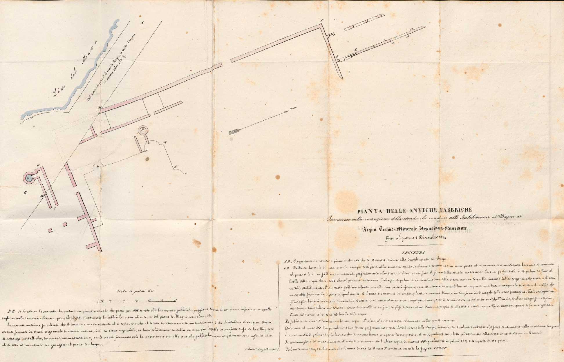 Pianta delle Antiche Fabbriche incontrati nella costruzione della strada che conduce allo Stabilimento dei Bagni di Acqua Termo-Minerale-Vesuviana-Nunzianti.